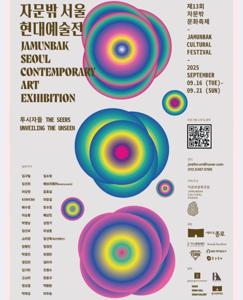 자문밖 문화축제가 처음으로 선보이는 융합적 성격의 현대예술전입니다. “예술을 통한 시선의 전환과 환유(歡遊)” 를 주제로, 보이는 것 너머 세계와 존재의 이면을 꿰뚫어보고, 미지(未知)를 감지하는 예술가의 능력을 ‘함께’보고, 경험하는 축제 전시입니다.